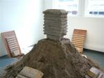 A response to the economic collapse the world still finds itself in, this large sand sculpture of the Irish Central Bank was created to imbue the hopelessness of the continued propping up of the old financial institutions the world continues to try and save. Originally envisioned as a perfect mould of the building , issues with the moulding process meant that the finished piece never cast perfectly always collapsing or losing a section of the building in the process. This failure mirrored the continued process of pumping billions into the failing financial institutions expecting this to fix the problem. The large mound the bank stands on symbolises the previous failures and how the same action will not give you different results.