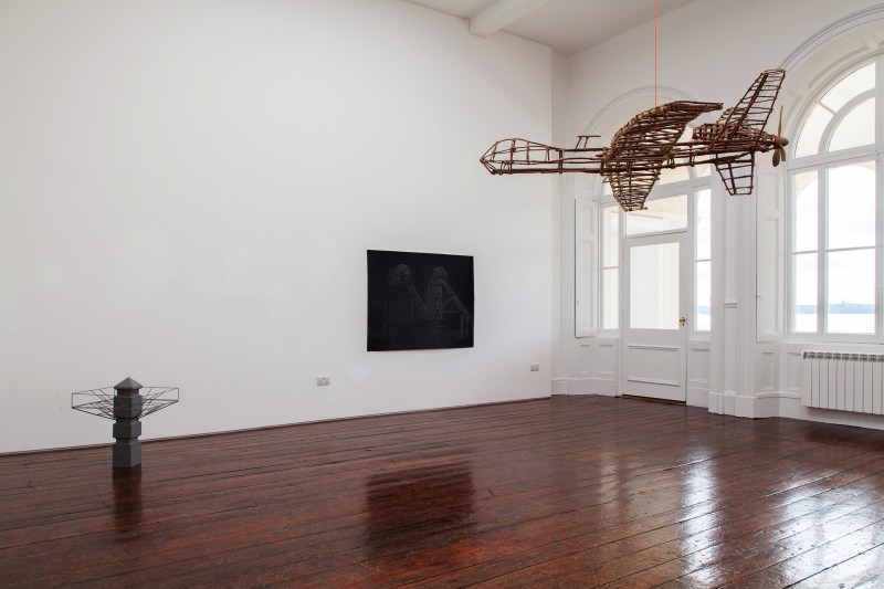 Lots and Lots or Not at All, Elder Wood, Twine, Cardboard, Rope, Bucket and Spike Island Earth, 400 x 200 x 70 cm,